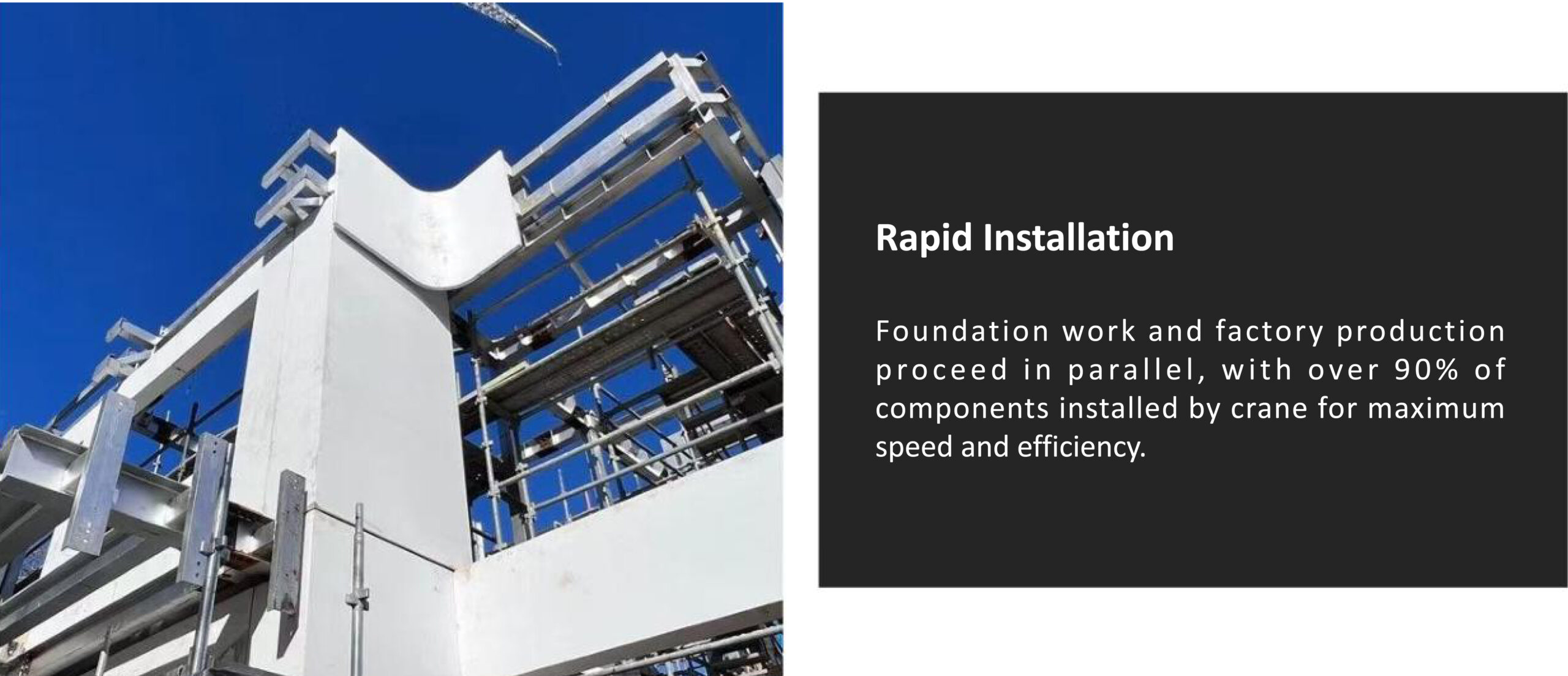 Modular Design Enables rapid on-site installation. The predominantly assembly-based process ensures fast construction, high efficiency, and significantly reduced labor costs.