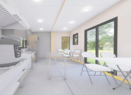 VATOH Expandable Container Kitchen | 20 Foot High Cube Shipping Container Kitchen with Prep Table & Stove | Prefab Commercial Kitchen for Sale VE60-20HQ04