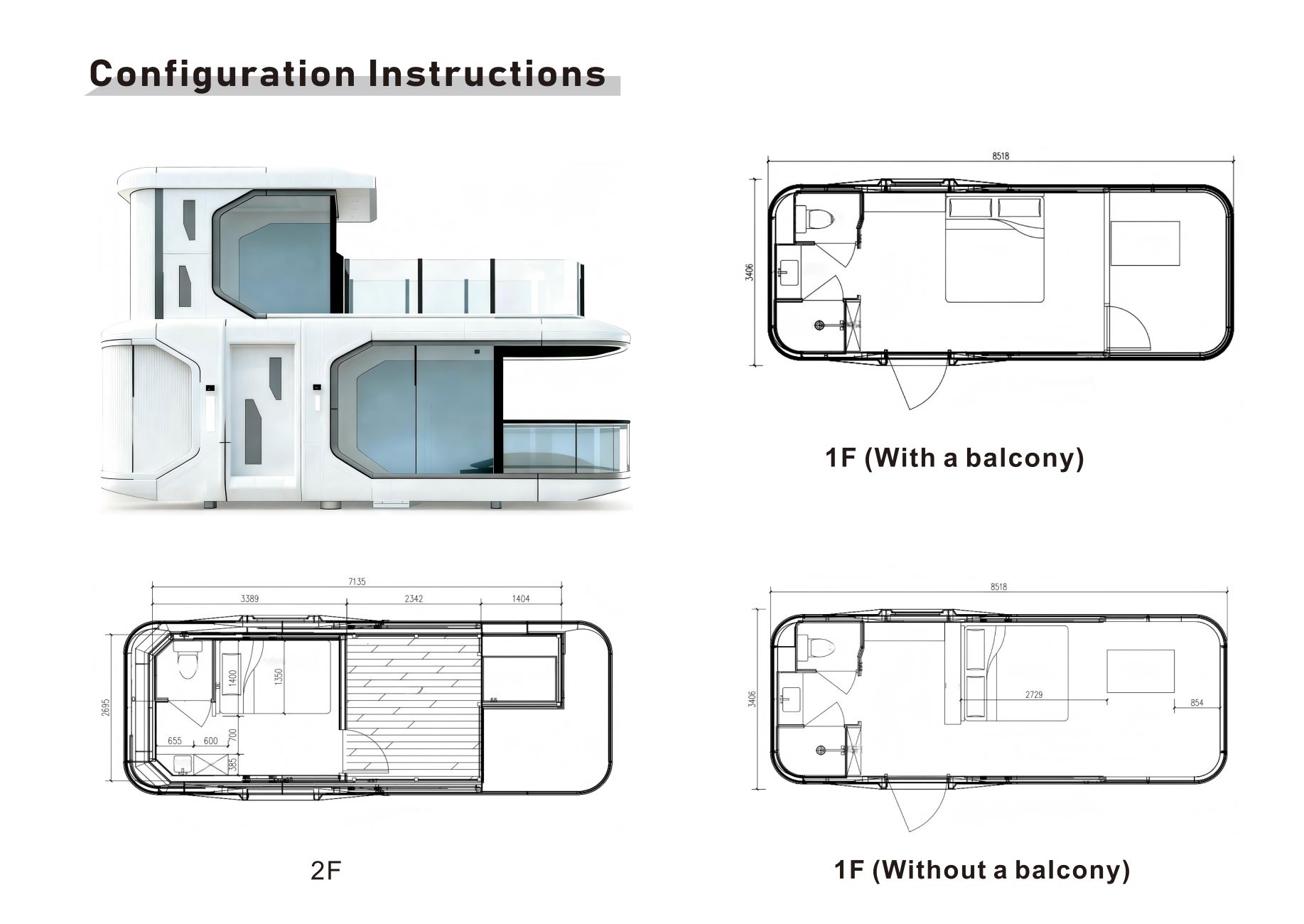 VATOH 8.5M Luxury Space Capsule Houses 2 Story Module Homes VM85-2S