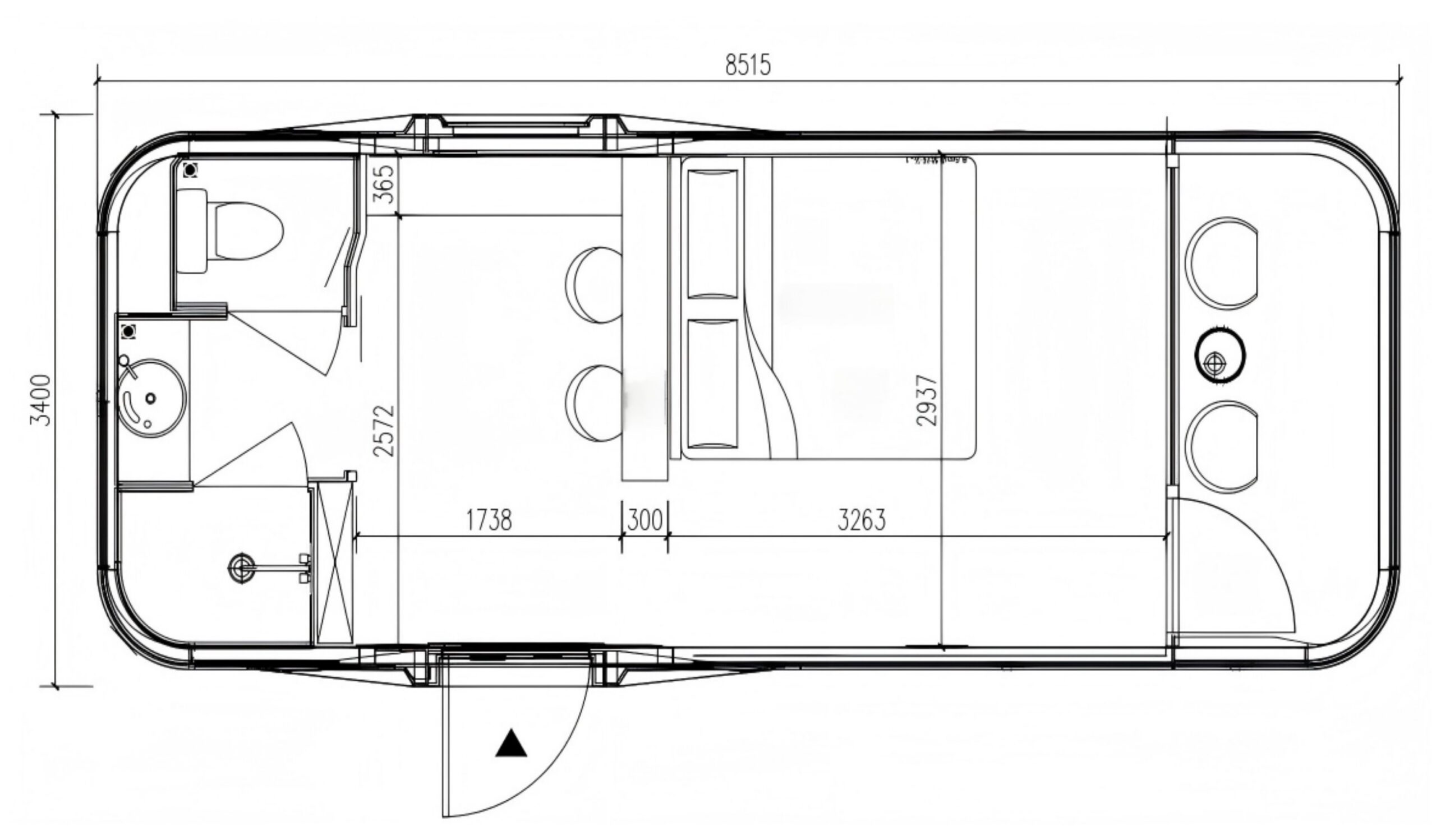 The VM85 redefines group accommodation. Drawing inspiration from a futuristic space capsule, its sleek exterior, built on a robust steel frame with aviation-grade aluminum cladding and high-performance insulation, ensures durability and comfort.