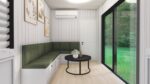 The thoughtful layout appeals to couples and solo travelers seeking stylish, comfortable accommodations with distinct living and sleeping areas.