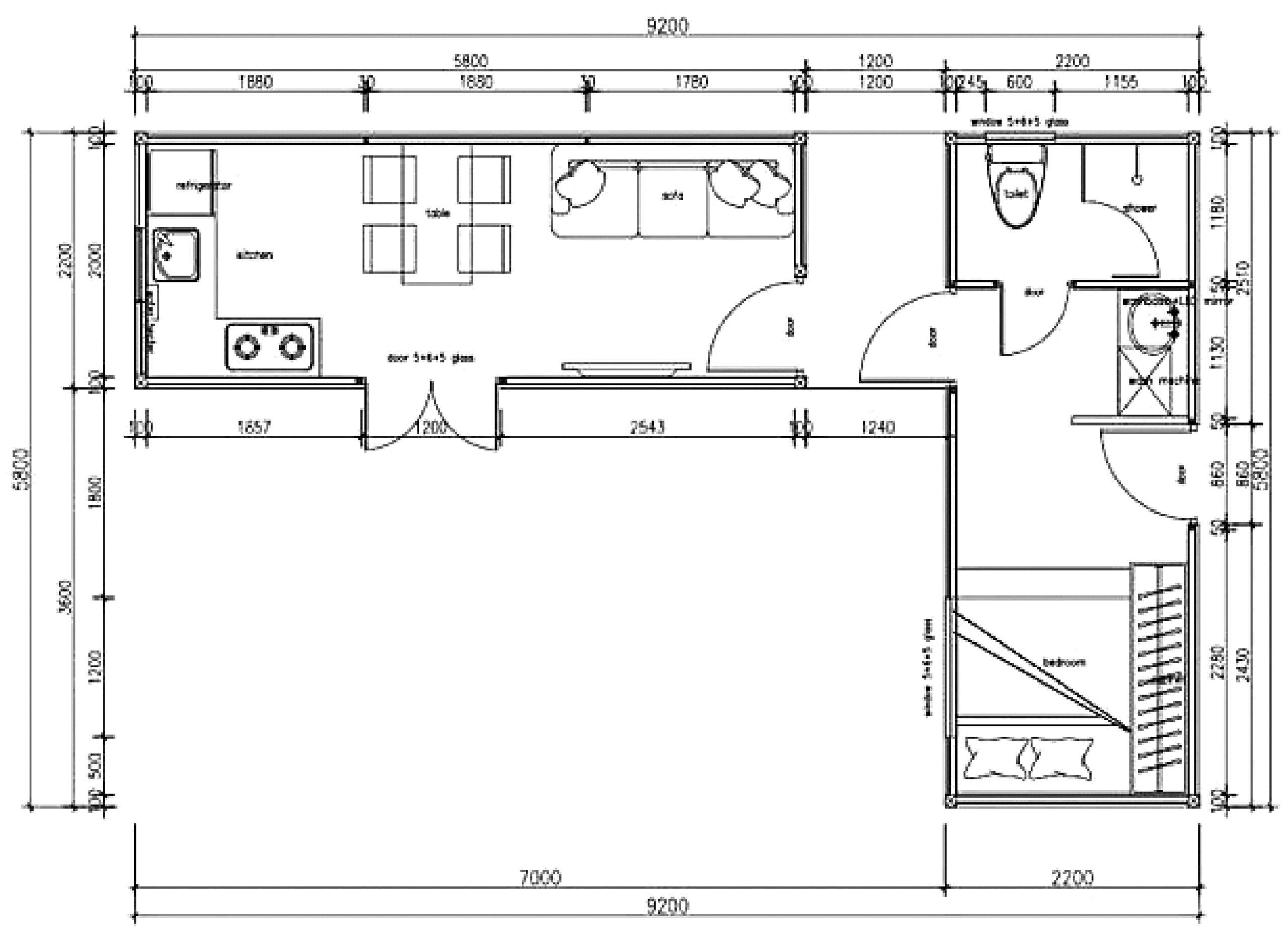 Factory efficiencies and standardized production make the VC58 a low-cost container house option without sacrificing quality or design.