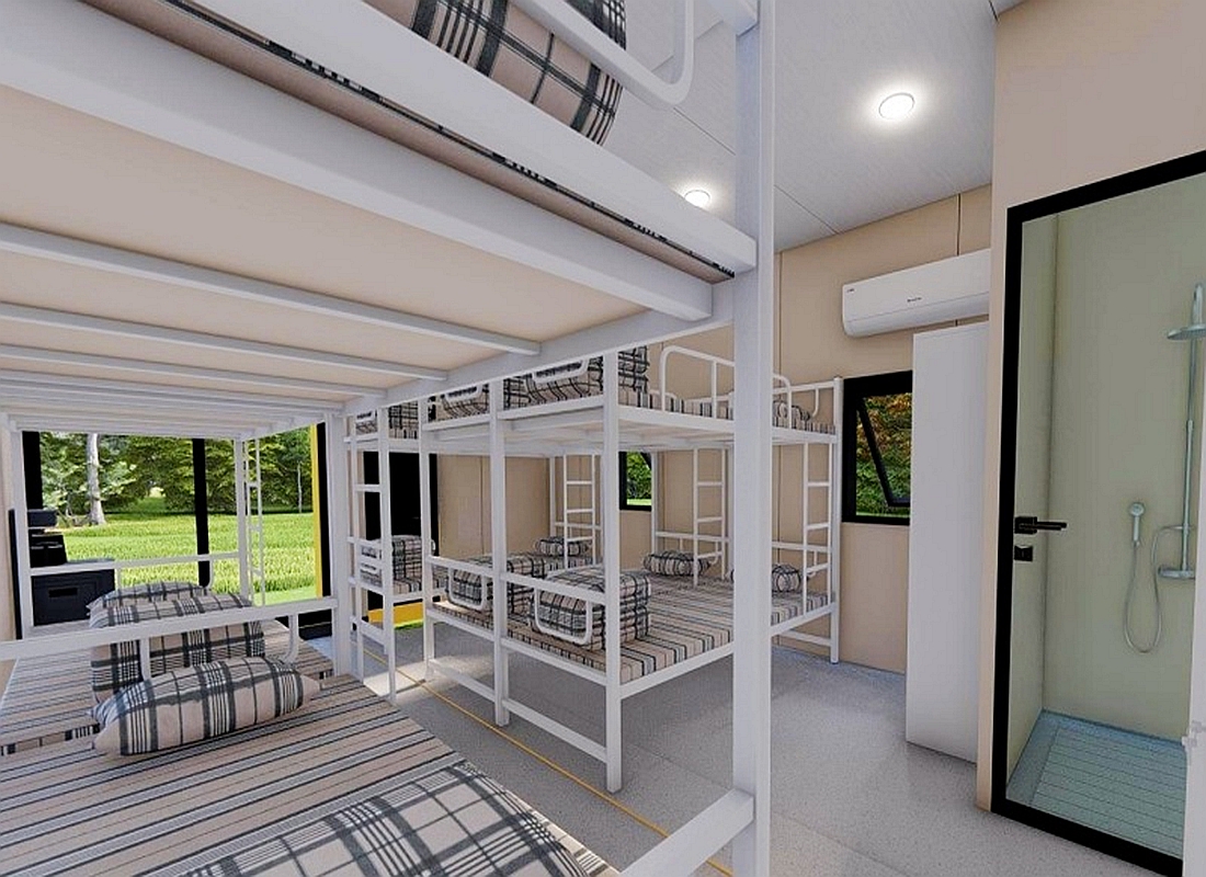 • 10-Bed Capacity: 5 bunks sleep 10 workers in 29㎡ expandable space
