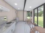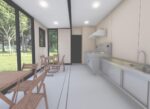 Welcome to the VE60-20HQ04—a purpose-engineered expandable container kitchen designed for culinary professionals who need flexible, mobile, and functional food preparation space. Built from a 20ft High Cube shipping container with 9’6″ ceilings throughout, this innovative unit expands on-site to approximately 29 square meters of dedicated kitchen space, featuring a generous preparation area at one end, a full cooking station at the opposite end, and a versatile expanded central area for dining, service, or additional prep work.