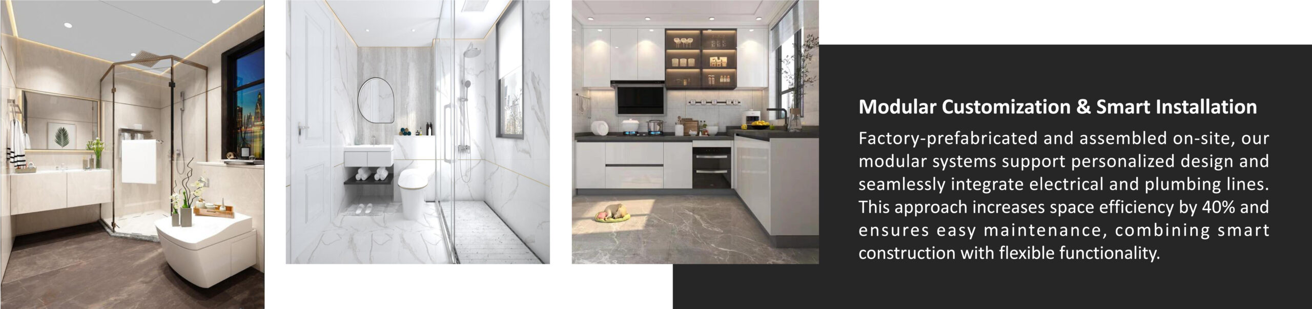 集成厨房与卫浴系统采用工厂预制、现场组装的模式。集成厨房包含橱柜、电器、管线一体化设计,安装快捷,空间利用率高;集成卫浴采用防水底盘、墙板顶板整体成型,实现干湿分离,杜绝渗漏。两者均支持个性化定制,安装效率提升70%,维护便捷,兼具美观与实用性,是未来住宅的标准配置。